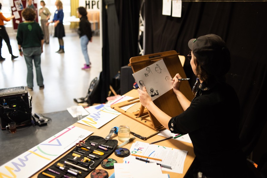 Es war spannend die vielen Perspektiven zu hören. Nach den kurzen Impulsen teilten wir uns in kleine Gruppen und diskutierten verschiedene Fragen. Am Ende sollte eine Person zusammenfassen, worüber man geredet hatte, aber alle waren so vertieft in die Diskussion, dass wir vergasen eine Person festzulegen. Daran konnte man erkennen, wie wichtig das Thema für alle war. Festgehalten wurde die Veranstaltung und der ganze Tag von den fantastischen Skizzen von Nora Haakh.