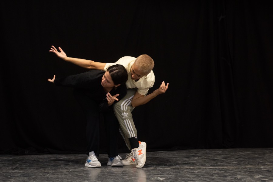 Es war sehr cool. Insgesamt haben wir mit mindestens sechs unterschiedlichen Klassen Workshops durchgeführt. Nach den Tanzworkshops haben wir uns mit den Schülerinnen ausgetauscht. Mit den Themen, die dort aufgekommen sind, haben wir dann angefangen ein Stück zu kreieren. Bei Proben vor anderen Klassen haben wir dann direkt Feedback zur Stückentwicklung bekommen. Das war ein sehr spezieller Prozess, weil wir nie zuvor sofort so viel Feedback bekommen haben und auch so viel ehrliches, ungefiltertes Feedback von Schülerinnen, die jetzt nicht jeden Tag ins Theater gehen.
