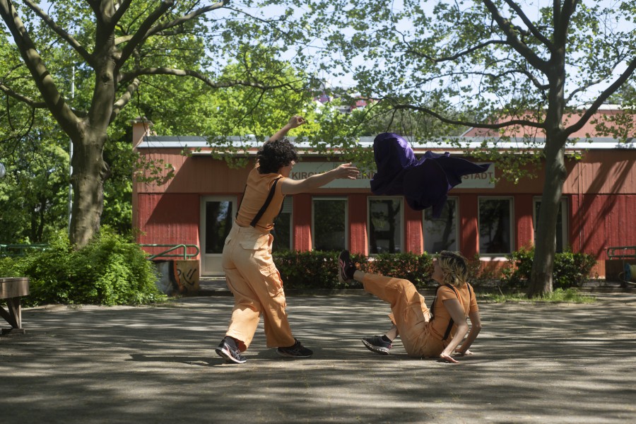 Im Austausch mit Kindern der Kita am Apfelsinenplatz haben die beiden Performer:innen Coila-Leah Enderstein und Nicola van Straaten ein Tanzstück entwickelt. Für alle, die gerne fallen, nur um danach wiederaufstehen zu können.