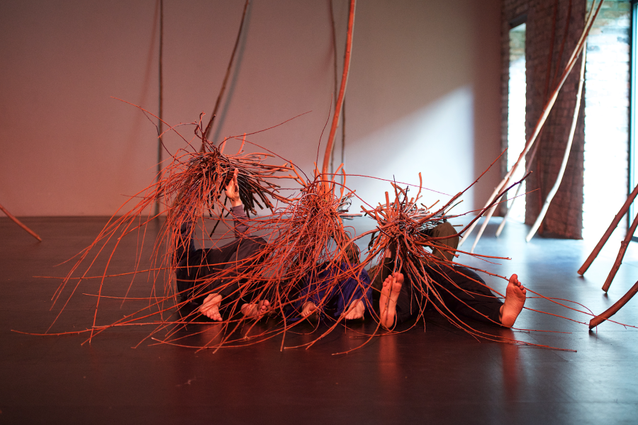 Harvest is about mindfulness; and about the question of how to work with nature, how to harness it, and how to face it with respect. Choreographer Isabelle Schad explores the brushwood with three dancers and a musician, creating surprising and ever-changing landscapes. Between the exploration of the material, the layering, storing, bending of the whips, twigs and branches as well as listening to the crackling and cracking in the silence, an imaginative play develops with seemingly weightless magical creatures and other small wonders that appear - and disappear again. With poetry and lightness, the ensemble explores the relationship between man and nature - but also the sound cosmos of the willows that create the rhythms for the harvest and the dance.